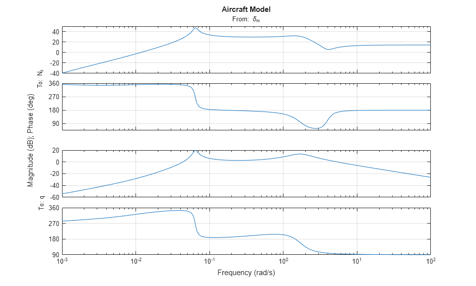 load ConcordeData G bode(G,{1e-3,1e2}), grid title('Aircraft Model')