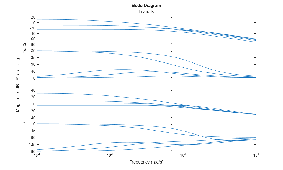 Alternatively, you can tune the gain schedules directly in MATLAB® without using the slTuner interface. First parameterize the gains as quadratic functions of Cr as done above.