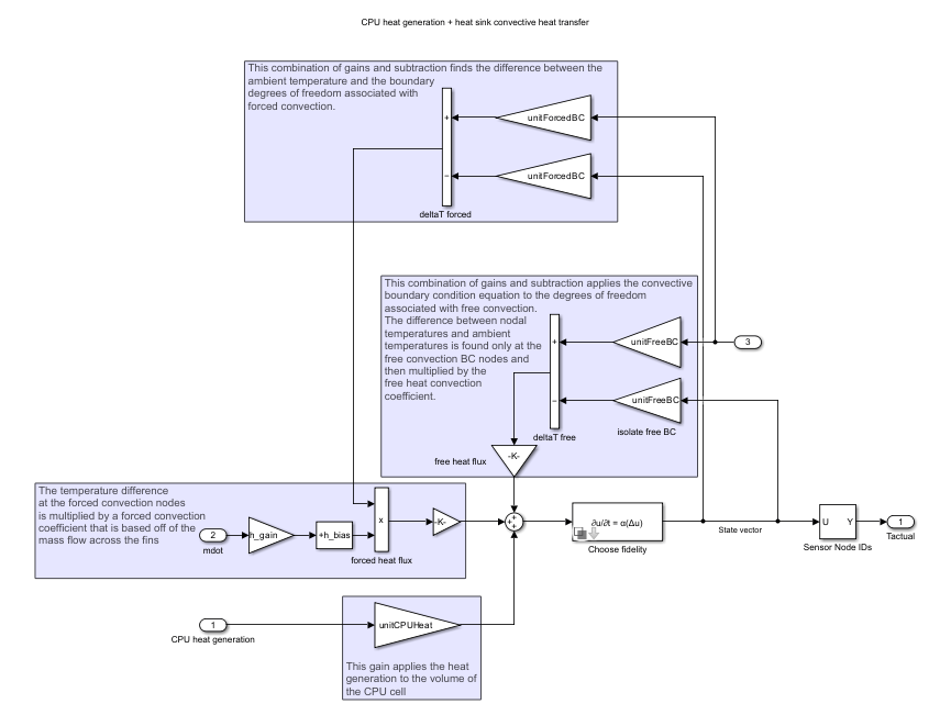 This example provides the HeatSinkSubsys model which implements the CPU heat generation and heat sink convective heat transfer model.
