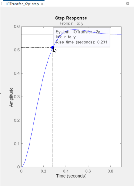 To add the rise time to the Step Response plot, right-click the plot area, and select Characteristics > Rise Time.