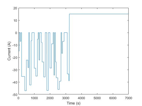 The input currents are randomly generated pulses when the battery is discharging and constant when the battery is charging.