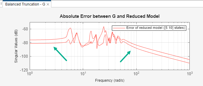 Model Reducer computes new reduced models. The error in the high-frequency region is decreased at the cost of a slight increase in error at low frequencies.