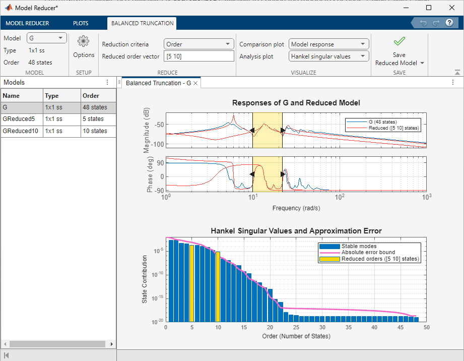 Reduce Model Order Using Model Reducer App