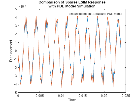 The linear response from lsim closely matches the transient simulation of the structural model obtained in the first step.