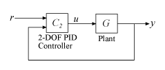 The 2-DOF PID controller is a two-input, one output controller of the form C2(s), as shown in the following figure. The transfer function from each input to the output is itself a PID controller.