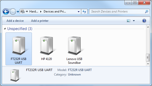 2. Locate the USB device that connects to the Intel SoC platform, such as FT232R USB UART.