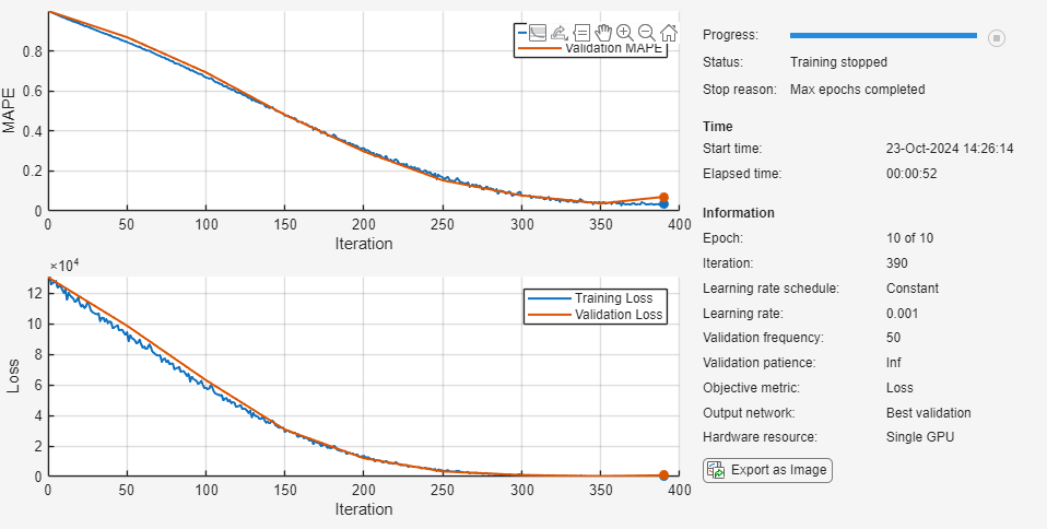 sets the metric = mapeMetric(PropertyName=Value)Name, NetworkOutput, and NormalizationFactor properties using name-value arguments.