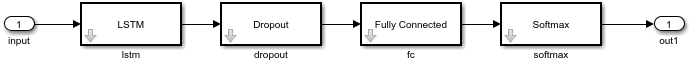 You can also export your model as a single network block. In Deep Network Designer, select Export as to be Single Network Block. In this example, the app exports the network as a Stateful Predict block.