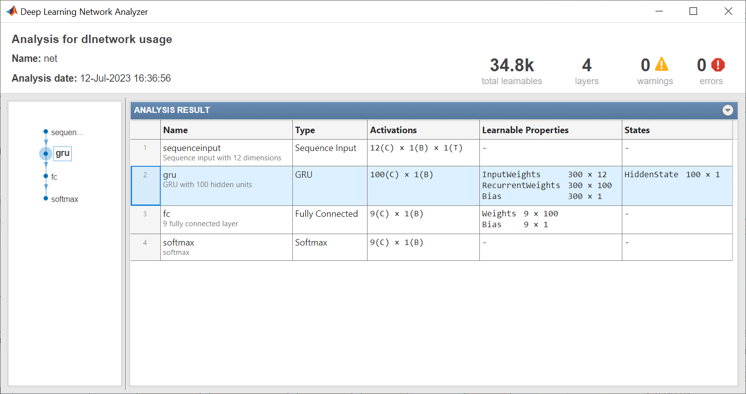 Activations, State, Parameters and Initialization, Learning Rate and Regularization, and Name properties using one or more name-value arguments.