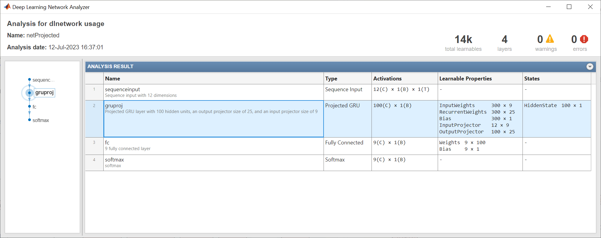 compressNetworkUsingProjection | neuronPCA | trainingOptions | trainnet | ProjectedLayer | lstmProjectedLayer | gruLayer