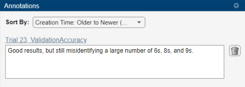 When you run the experiment, Experiment Manager trains the network defined by the training function multiple times. Each trial uses a different combination of hyperparameter values.