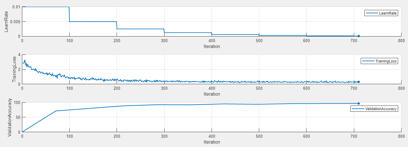 numEpochs = 10; miniBatchSize = 128; momentum = 0.9; learnRateSchedule = params.Schedule; initialLearnRate = params.InitialLearnRate; learnRateDecay = params.DecayRate; learnRateDropFactor = params.DropFactor; learnRateDropPeriod = 100; learnRate = initialLearnRate;