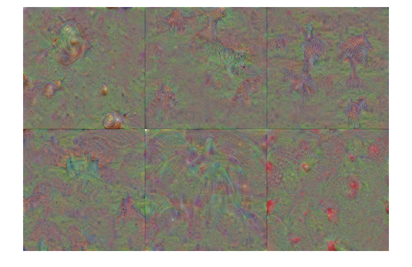 I = deepDreamImage(net,layerName,channels,OutputScaling="clipped");|==============================================| | Iteration | Activation | Pyramid Level | | | Strength | | |==============================================| | 1 | 0.59 | 1 | | 2 | 1.24 | 1 | | 3 | 4.56 | 1 | | 4 | 7.37 | 1 | | 5 | 11.30 | 1 | | 6 | 13.99 | 1 | | 7 | 16.75 | 1 | | 8 | 19.87 | 1 | | 9 | 23.71 | 1 | | 10 | 28.93 | 1 | | 1 | 6.66 | 2 | | 2 | 9.83 | 2 | | 3 | 15.96 | 2 | | 4 | 14.49 | 2 | | 5 | 19.06 | 2 | | 6 | 22.67 | 2 | | 7 | 24.10 | 2 | | 8 | 24.78 | 2 | | 9 | 27.90 | 2 | | 10 | 32.13 | 2 | | 1 | 34.09 | 3 | | 2 | 40.02 | 3 | | 3 | 50.95 | 3 | | 4 | 50.22 | 3 | | 5 | 50.22 | 3 | | 6 | 54.28 | 3 | | 7 | 62.82 | 3 | | 8 | 70.92 | 3 | | 9 | 66.08 | 3 | | 10 | 75.71 | 3 | |==============================================| Training finished: Max epochs completed.