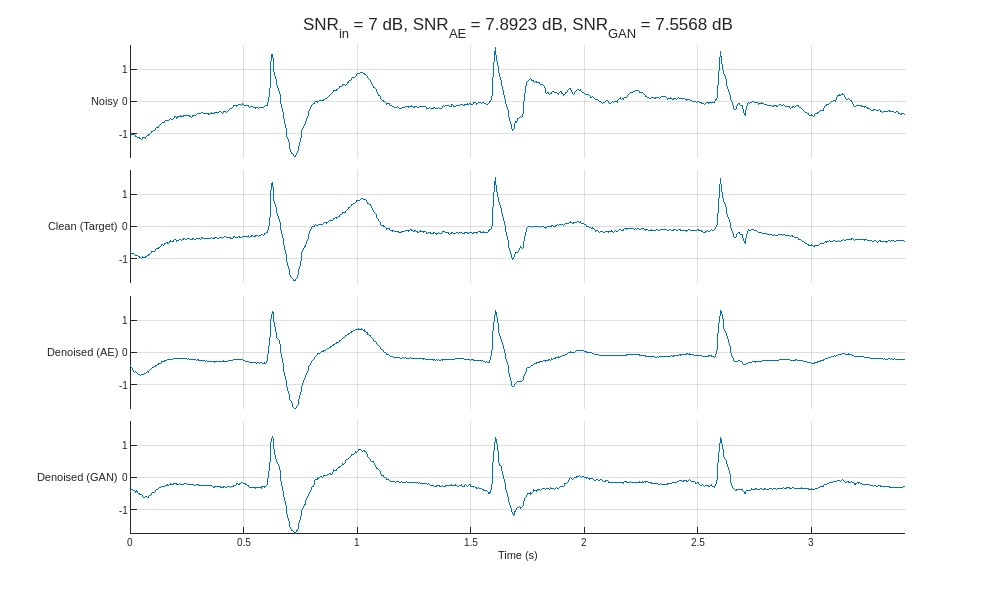YAE = denoise(denoiserAEECG,XTest); YGAN = denoise(denoiserGANECG,XTest);