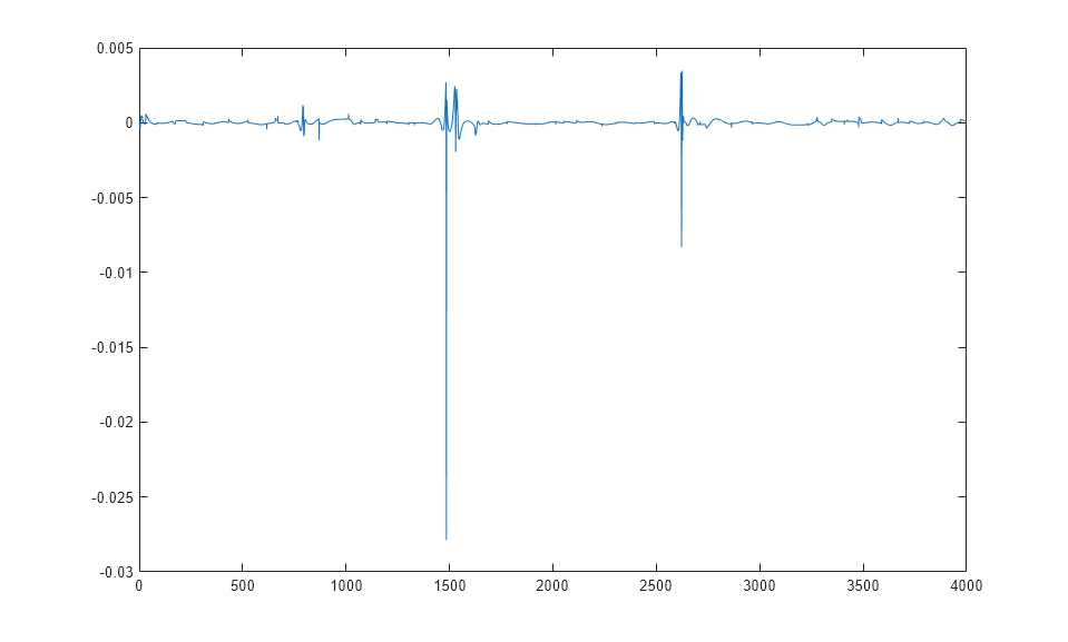 yp = sim(narx_net,p,Pi); e = cell2mat(yp)-cell2mat(t); plot(e)