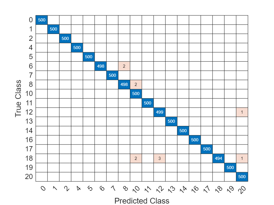 function cm = helperDistributionConfusionMatrix(tfID,tfOOD) trueDataLabels = [ repelem("ID",numel(tfID)), ... repelem("OOD",numel(tfOOD))]; predDataLabelsID = repelem("OOD",length(tfID)); predDataLabelsID(tfID == 1) = "ID"; predDataLabelsOOD = repelem("OOD",length(tfOOD)); predDataLabelsOOD(tfOOD == 1) = "ID"; predDataLabels = [predDataLabelsID,predDataLabelsOOD]; cm = confusionchart(trueDataLabels,predDataLabels); end