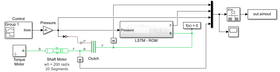 A ROM is a surrogate for a physical model that allows you to reduce the computation required with an acceptable compromise of the accuracy of the original physical model. For virtual sensor applications, where the model needs to run at high sampling rates in an embedded system, ROMs provide suitable approximations of the original physical system. While there is a variety of techniques for building a ROM, this example builds an LSTM-ROM (a type of ROM that leverages an LSTM network) and uses it in a Simulink model as part of a Deep Learning Stateful Predict block.