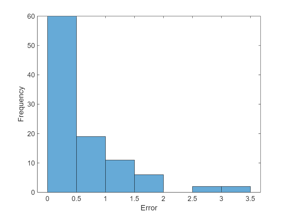 figure histogram(mean((TTest - YTest).^2,2)) xlabel("Error") ylabel("Frequency")