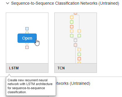 To create a sequence network, in the Sequence-to-Sequence Classification Networks (Untrained) section, click LSTM.
