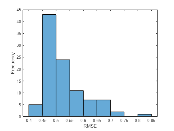 figure histogram(err) xlabel("RMSE") ylabel("Frequency")