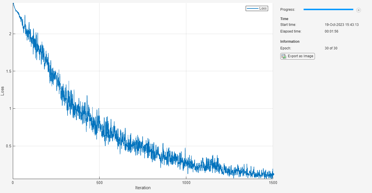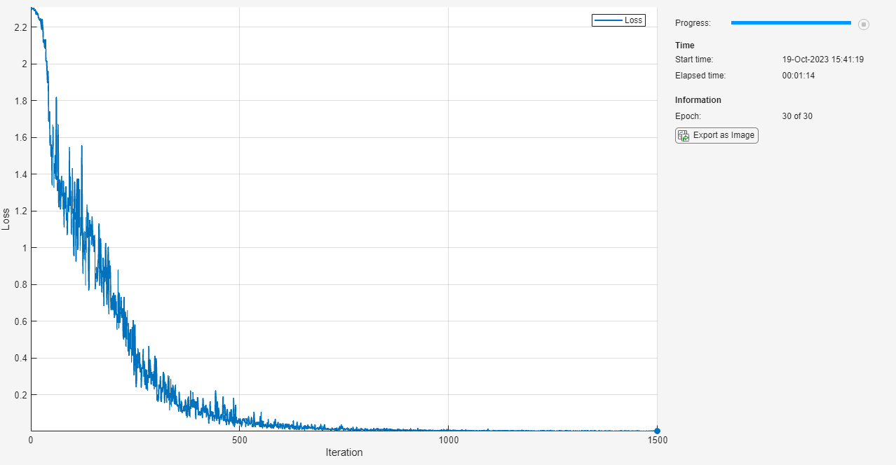 alpha = 1.25*epsilon;Initialize the TrainingProgressMonitor object. Because the timer starts when you create the monitor object, make sure that you create the object close to the training loop.