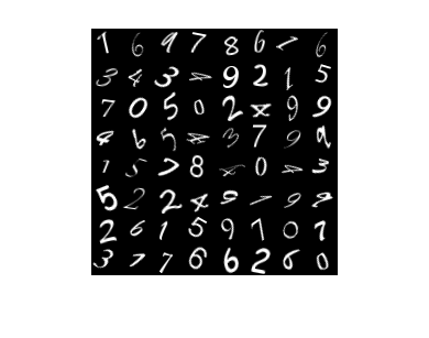 idx = randperm(numObservations,64); I = imtile(XTrain(:,:,:,idx)); figure imshow(I)