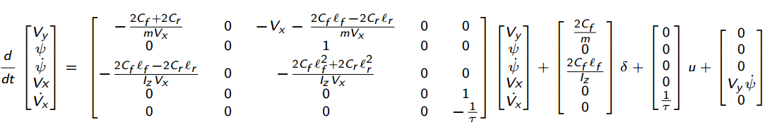 denotes the yaw angle. The vehicle parameters are provided in the helperACCSetUp file.
