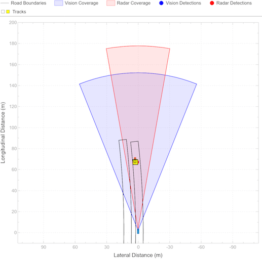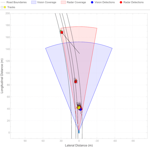 This example demonstrates two main additions to existing ACC designs that meet these challenges: adding a sensor fusion system and updating the controller design based on model predictive control (MPC). A sensor fusion and tracking system that uses both vision and radar sensors provides the following benefits: