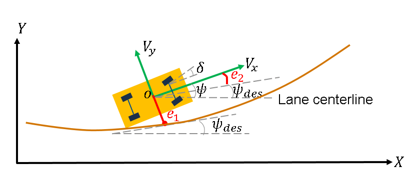 The goal for the driver steering model is to keep the vehicle in its lane and follow the curved road by controlling the front steering angle