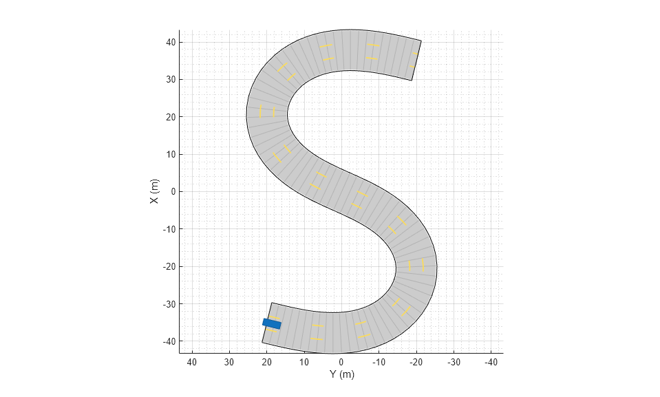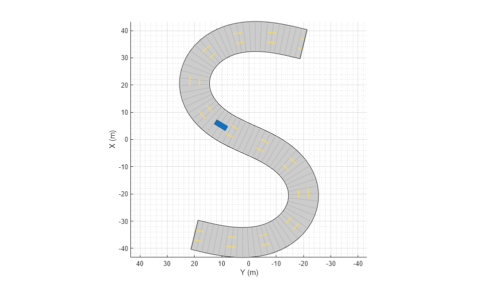 car = vehicle(scenario, ... 'ClassID',1, ... 'Position',[-35 20 0]); waypoints = [-35 20 0; -20 -20 0; 0 0 0; 20 20 0; 35 -20 0]; smoothTrajectory(car,waypoints);