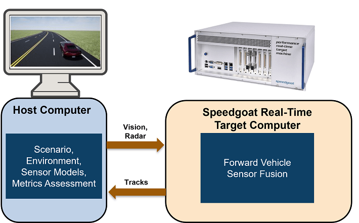 Deploy the forward vehicle sensor fusion algorithm to a Speedgoat machine using Simulink Real-Time™.