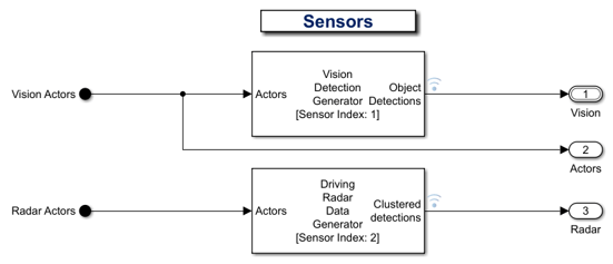 sensorSim = get(rrSim,"SensorSimulation"); visionSensorBlkPath = [modelName,'/Sensors/Vision Detection Generator']; radarSensorBlkPath = [modelName,'/Sensors/Driving Radar Data Generator'];