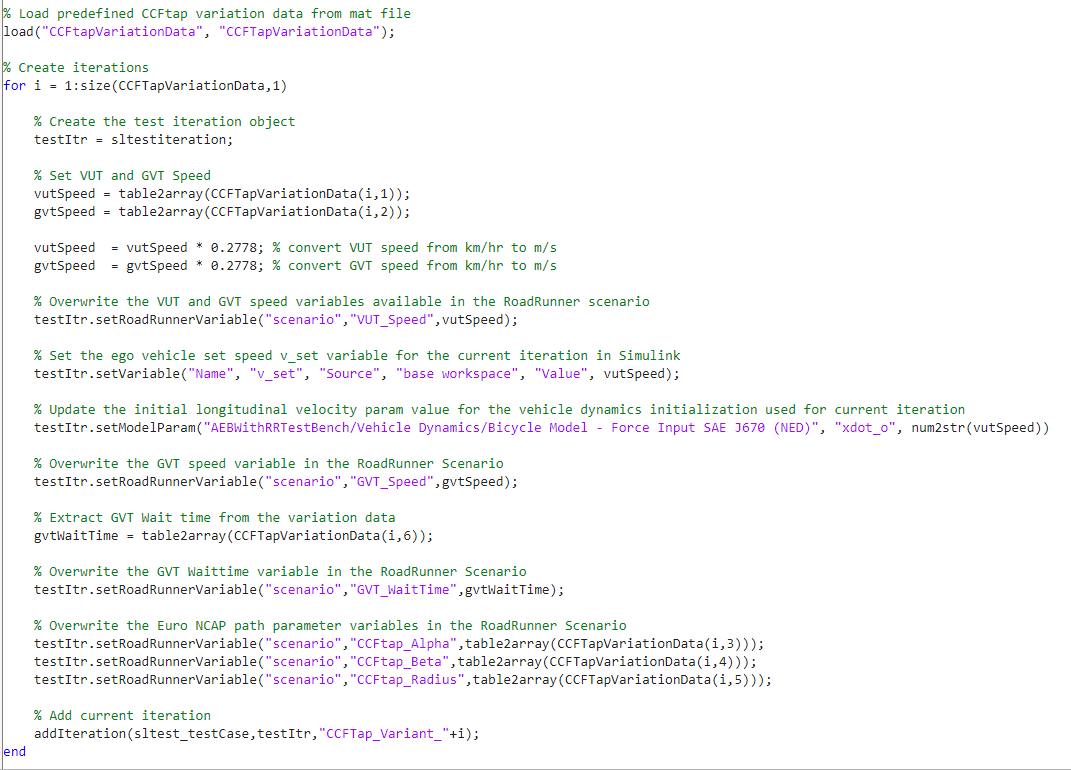 The Simulink scripted iteration framework enables you to modify these variables to automate the testing of these CCFTap scenario variants in closed-loop using the test bench model.