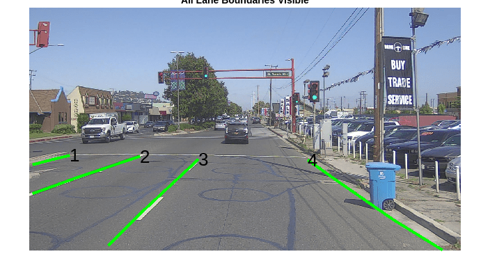 mappedBoundaries = cell(size(segments,1),1); for i = 1:size(segments,1) mappedBoundaries{i} = helperMapLaneBoundaryLabels(gTruth,sensor,segments(i,:)); end