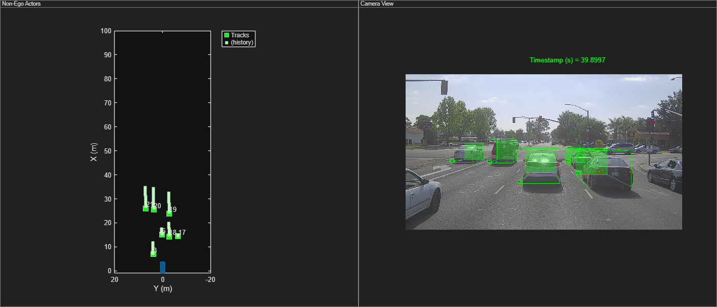 play(cameraData,Parent=axCam,PlotFcn=@(ax,img,i,cam)helperPlotActors(ax,img,i,cam,bep,trackData))