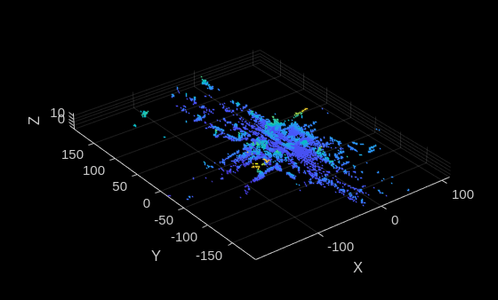 ptCldData = read(lidarData,RowIndices=1,PostProcessingFcn=@helperRotatePointCloud);