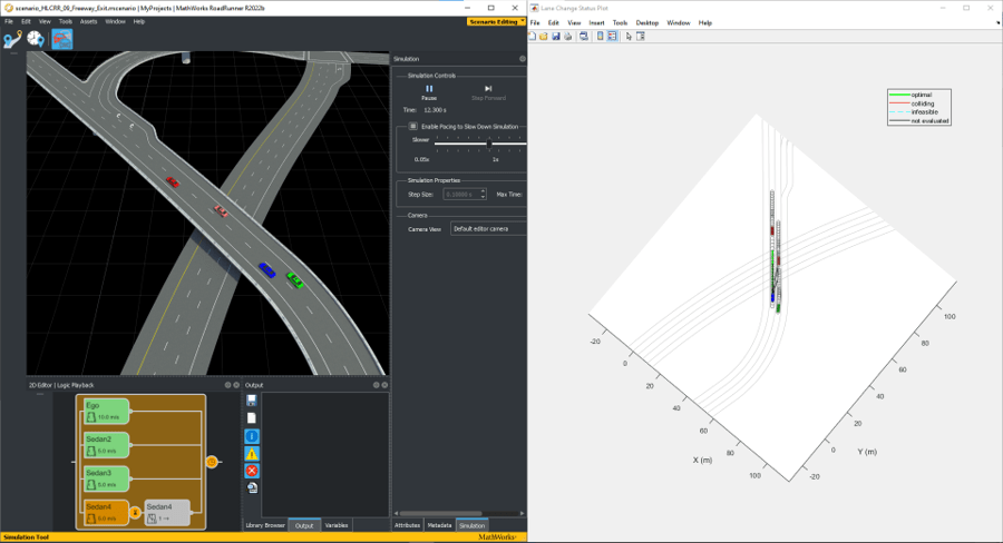 Simulate the lane change scenario — Cosimulate the lane change planner with RoadRunner Scenario and assess performance.