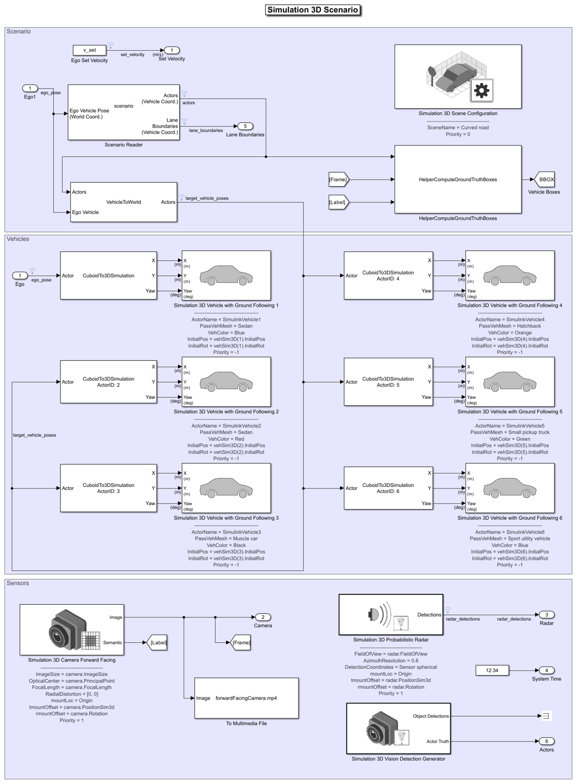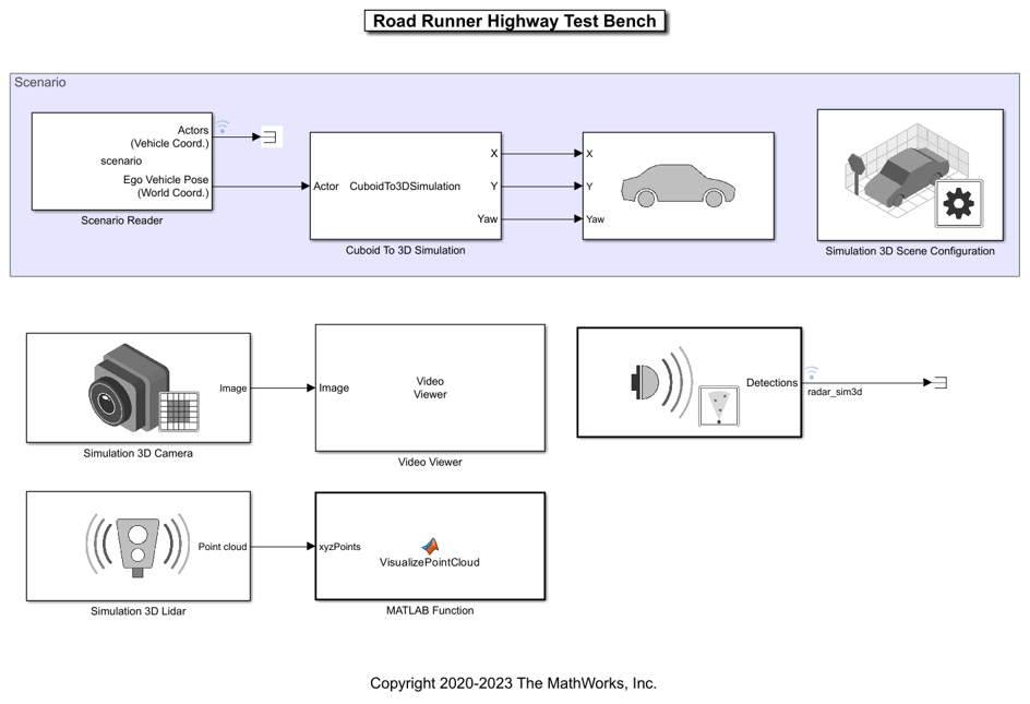 - Simulation 3D Scene Configuration | Simulation 3D Probabilistic Radar | Simulation 3D Camera | Simulation 3D Probabilistic Radar | Scenario Reader | Simulation 3D Vehicle with Ground Following