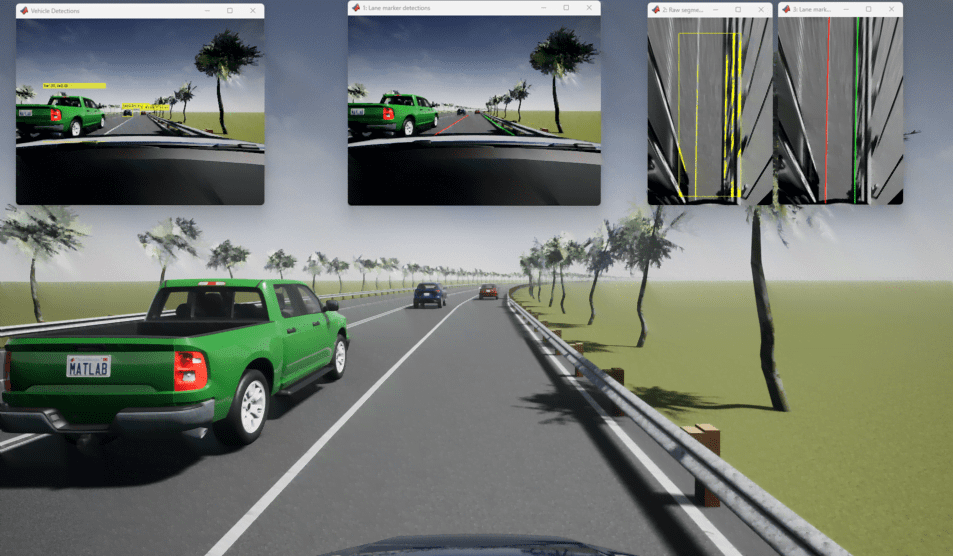 A highway lane following system steers a vehicle to travel within a marked lane. It also maintains a set velocity or safe distance to a preceding vehicle in the same lane. The system typically includes vision processing, sensor fusion, decision logic, and controls components. To ensure functional safety and interoperability, this system requires testing on a variety of road conditions. For example, testing on a scene that has varying shadows, lane marking types, and road materials can make it easier to identify edge cases.