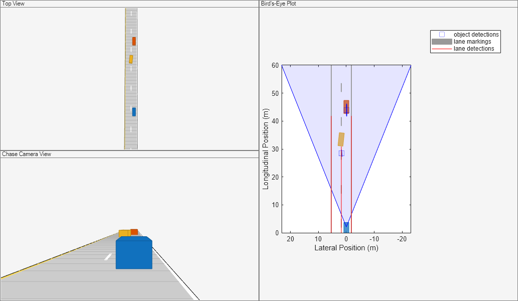 In this example, you generate vision detections programmatically. You can also generate detections by using the Driving Scenario Designer app. For an example, see Create Driving Scenario Interactively and Generate Synthetic Sensor Data.