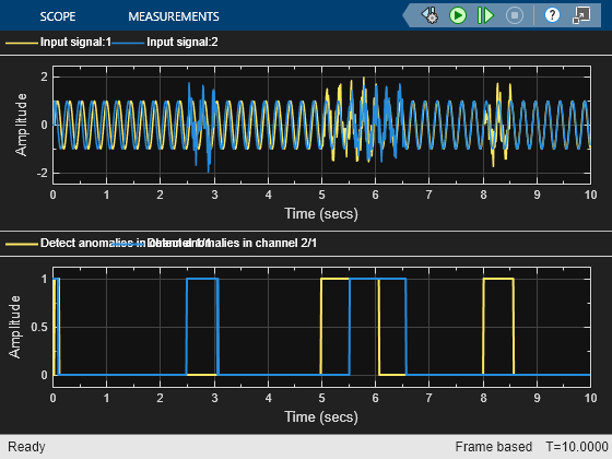 For examples that shows this workflow in detail, see Detect Anomalies in ECG Data Using Wavelet Scattering and LSTM Autoencoder in Simulink and Detect Independent Anomalies in Multichannel Sinusoidal Signal.