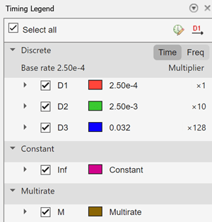 Decrease the overlap length to 30. The hop size is now 10. Run the model again. View the sample time of the two output ports in the timing legend. To view the timing legend, in the Debug tab of the Simulink model toolstrip, click Information Overlays > Timing Legend. The timing legend shows that the sample time of the output ports is 10 times the sample time of the input port. For every 10 input samples, the block produces 1 output sample. To change the sample time at the output port, adjust the hop size accordingly. For more information on sample time at the block ports, see Sample- and Frame-Based Concepts.