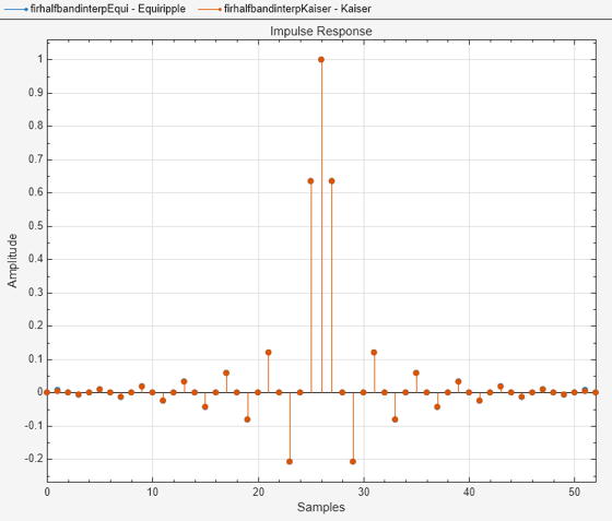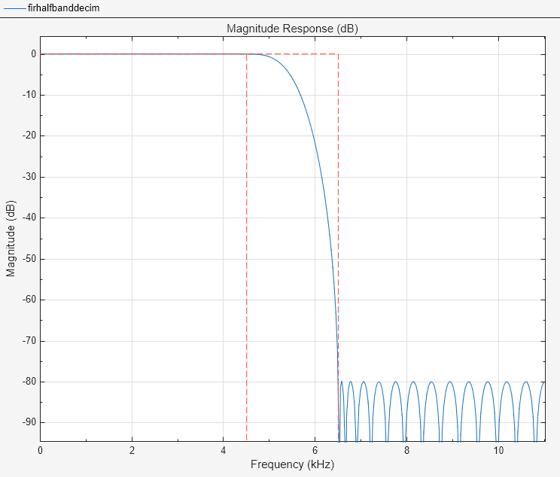 firhalfbandinterp = dsp.FIRHalfbandInterpolatorfirhalfbandinterp, with the default settings. Under the