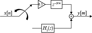 When the filter half order is odd, H1(z) becomes the gain followed by the delay. This is because the delay required to make the even polyphase component causal can be odd or even depending on the filter half order.