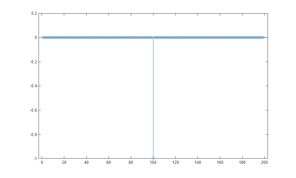 stem(1/2*conv((-1).^n.*h0,g0)+1/2*conv((-1).^n.*h1,g1))