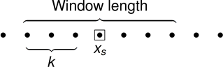 algorithm centers the window on the sample, marked