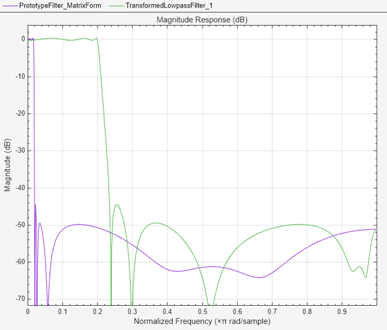 The prototype lowpass filter is specified with the numerator and denominator
