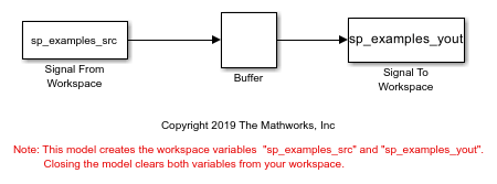 To determine the frame size of the input to the Buffer block, open the Signal From Workspace block mask by double-clicking the block in your model. Verify that you have the following settings: