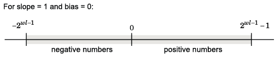 In the trivial case, slope = 1 and bias = 0. Scaling is always trivial for pure integers, such as int8, and also for the true floating-point types single and double.