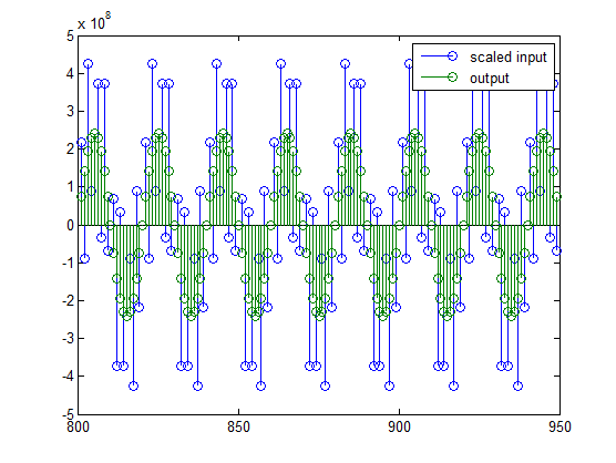 stem(n(yidx), [double(yout(yidx)'), double(ysc(yidx)')]);
